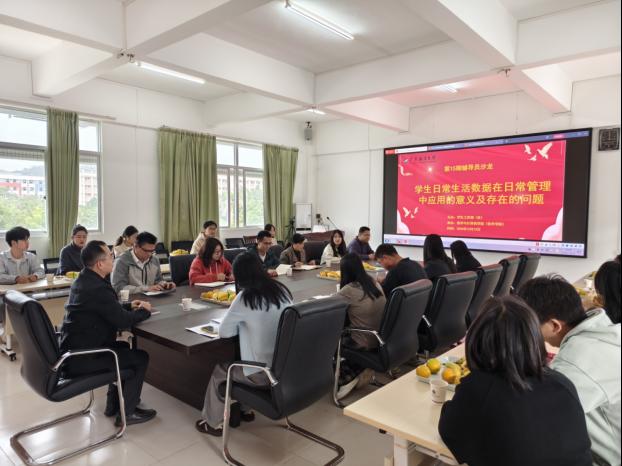 党委副书记农康主持,以“学生日常生活数据在日常管理中应用的意义及存在的问题”为探讨方向,各学院30余位辅导员参与活动。