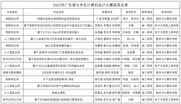 团队的《柑橘木虱病虫害物联网监测预警系统》和来自电子信息工程学院团队的《基于物联网多端协同和AI深度视觉城市河道清洁水下机器人》、《基于IOT与V-Slam的家居安保机器人》三项作品勇夺省赛一等奖。