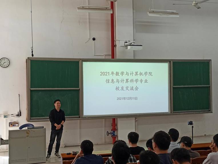 最后,两位校友针对同学们提出的问题进行一一解答,并向师弟师妹指出学习中应着重打好数学基础,良好的数学基础和敏捷的数学思维是我们在工作上的优势,课余之下也应多参加与专业相关的比赛,巩固所学的专业知识,拓宽知识面,在比赛之中积累经验。