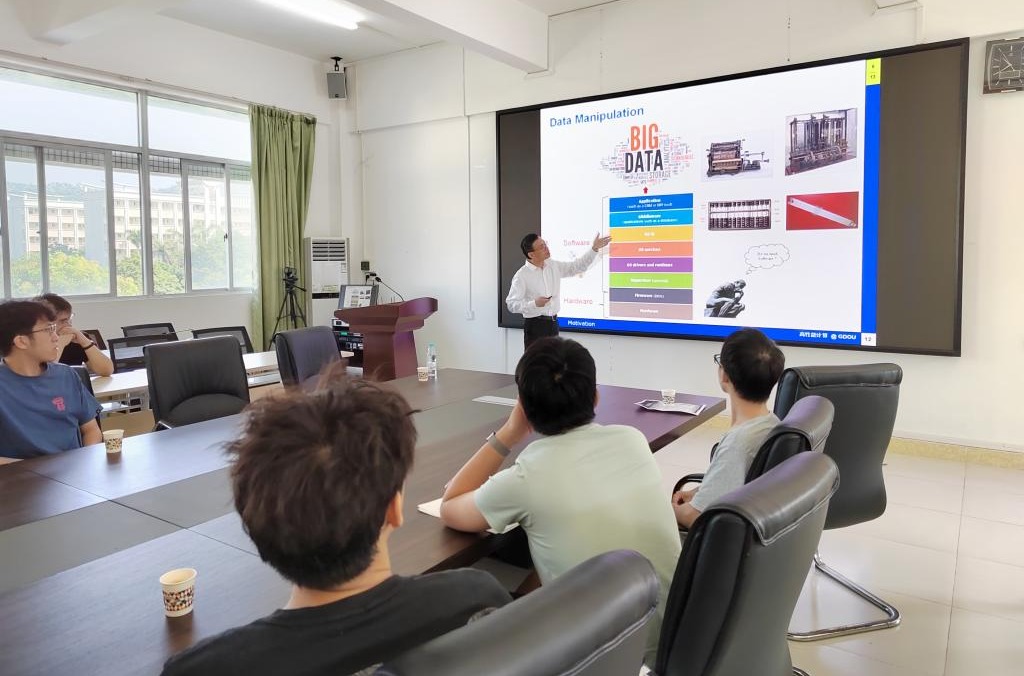 做学术报告,题目为:高性能计算的过去、现在和未来。研究生院副院长叶国栋主持了学术报告会,约25名师生聆听了本次学术报告。在学术报告中,姜海教授指出,在大数据和人工智能时代,高性能计算特指计算机快速的运算能力,已成为解决实际问题的基础,是各国追逐的前沿领域。姜教授特别分享了目前高性能计算所面临的主要挑战,共同感知其未来的发展方向和趋势以及对计算机学科建设的影响。