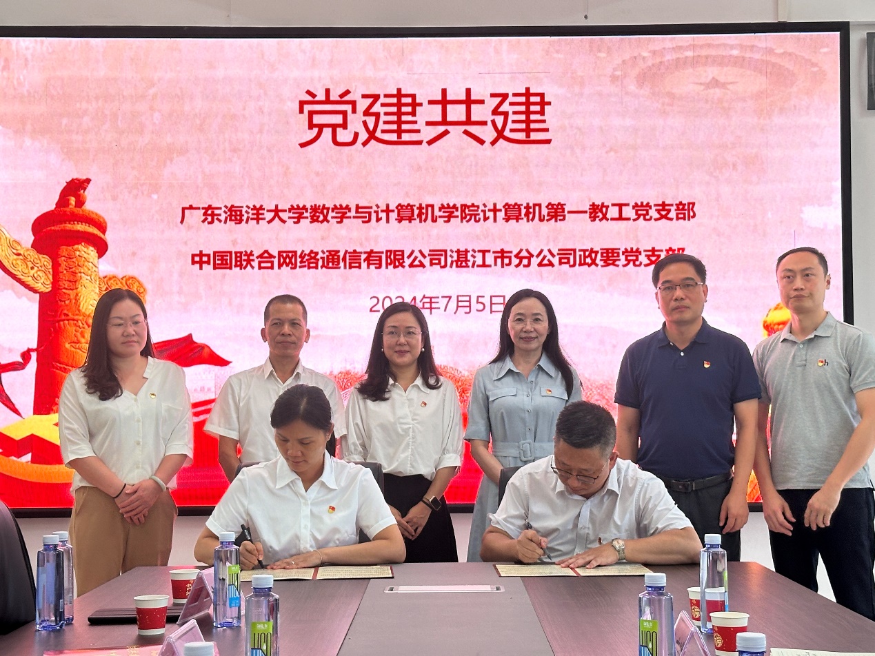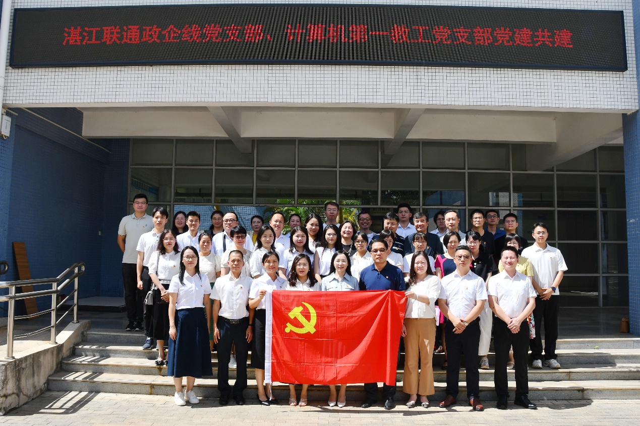 计算机第一教工党支部与湛江联通政企线党支部在明德楼A1405会议室开展党建共建活动。活动由计算机第一教工党支部书记余应淮副院长主持,学院党委书记龙俊、院长彭小红、湛江联通政企常务副总经理黄少萍、政企BG高级副总经理李秀文、温立新以及双方支部的全体党员参加了活动。
