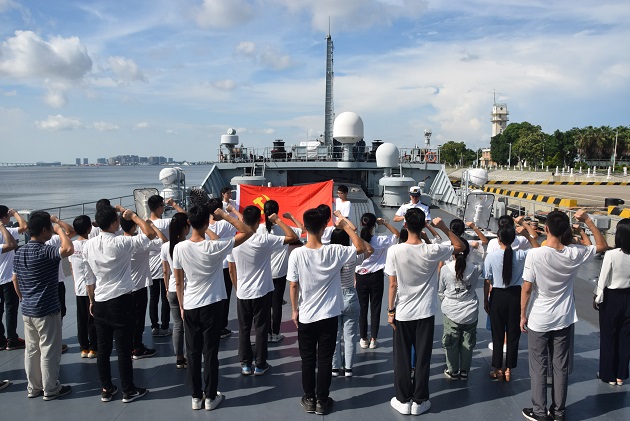 全体政治辅导员和学生党员在院党委周荣伟副书记的带领下,到南海舰队92511部队开展主题党日活动。