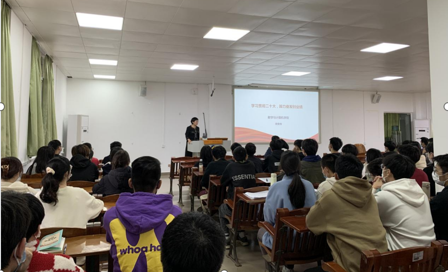 12月8日下午,学院党委副书记周荣伟在明德楼103室为学生解读党的二十大报告,全院学生党员和入党积极分子共160多人参加。