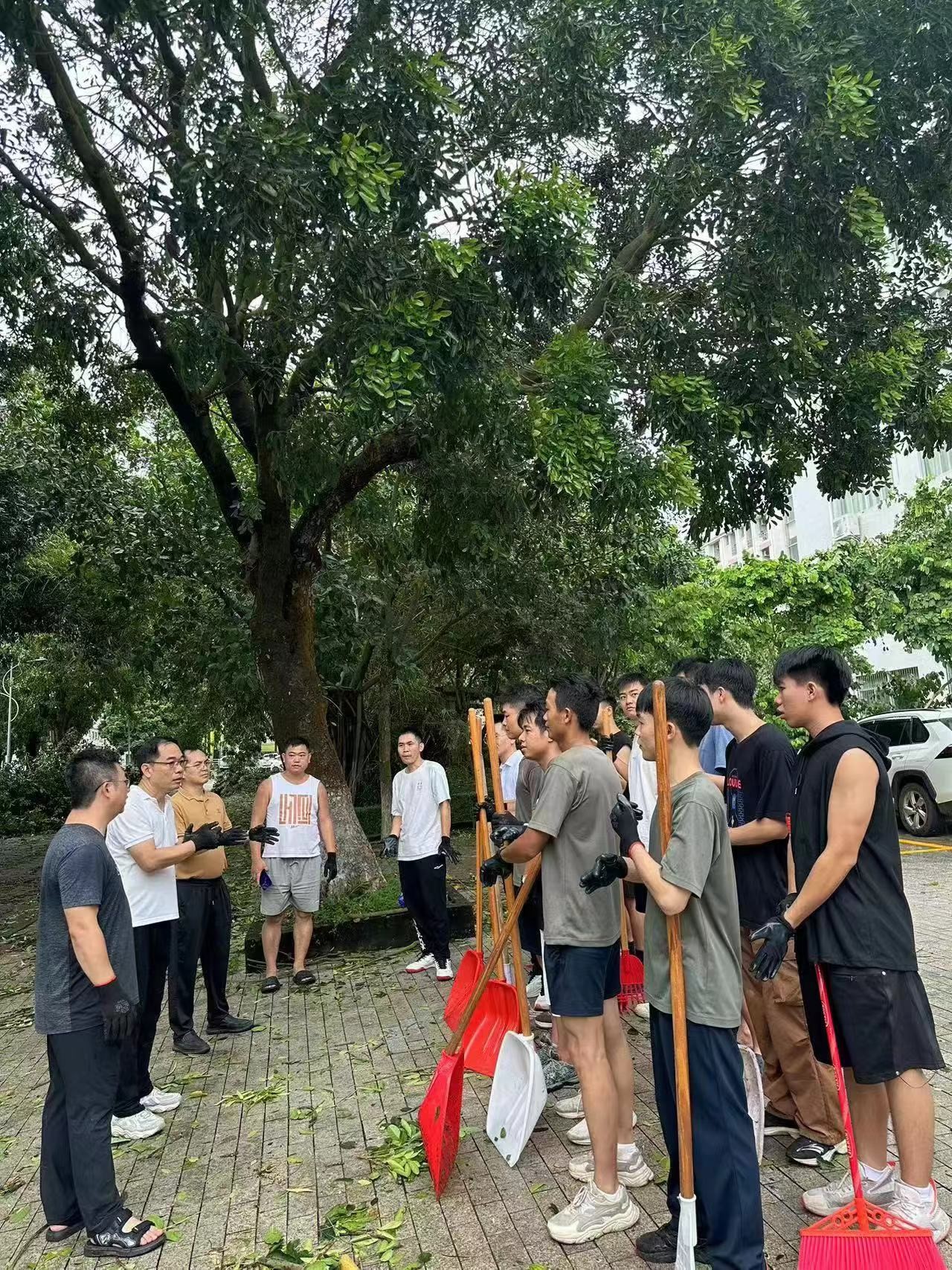 的退伍学生们,在学院领导的坚强带领下挺身而出,勇担起了台风后的校园修复工作,用实际行动诠释了“退伍不褪色,学院一家亲”的深刻内涵。