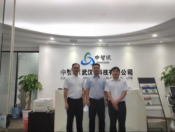 主任徐国保一行走访中智讯(武汉)科技有限公司,就校企合作、实验室共建、就业实习基地建设等议题进行深入洽谈。