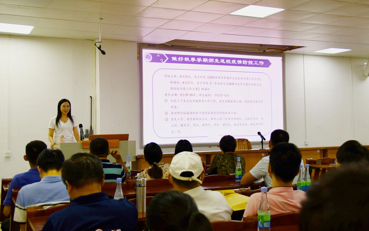 肖来胜对学院教学工作进行了安排和部署。陈入云对实验室和科研工作进行了安排和部署。周荣伟对新老学生入学的防控工作要求和就业工作进行了部署。