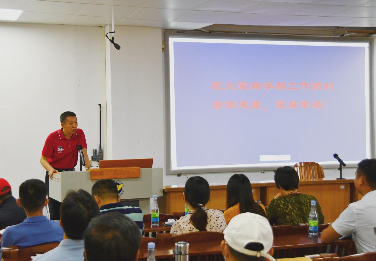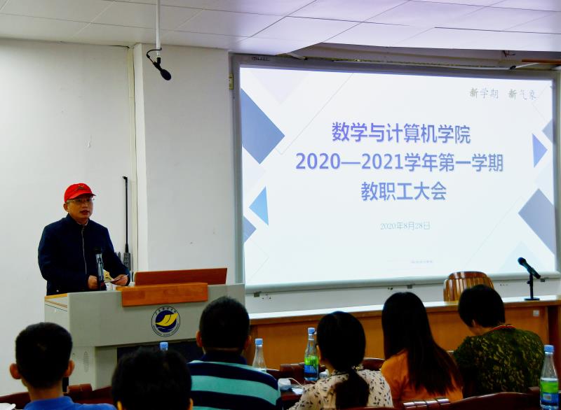 在二教A-103学术报告厅召开2020年秋季新学期开学工作会议。学院党委书记谢仕义主持了会议,院长彭小红对新学期学院总体工作进行了部署,党委副书记周荣伟、副院长肖来胜、陈入云对分管工作进行了部署,全院教职工出席会议。