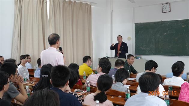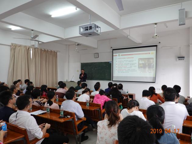 师生作第四次党代会宣讲报告,学院党委书记谢仕义教授主持会议,学院领导和无课的教职工、学生干部共70余人聆听了报告。