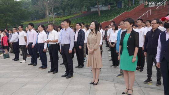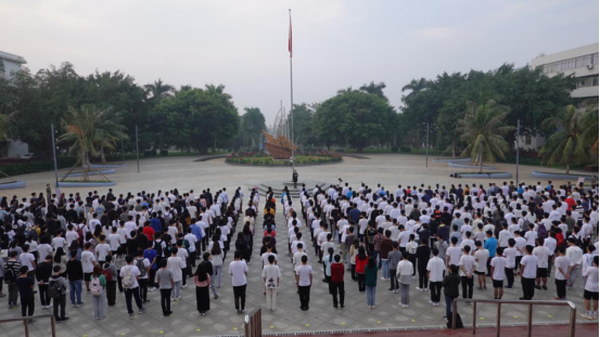 在湖光校区海洋广场举行庄重的升旗仪式,学校党委常委刘东超副校长、研究生院、国际交流与合作处、校友办、校团委等单位领导干部,以及学院师生代表共计500余人,参加了升旗仪式。仪式由学院党委书记谢仕义主持。