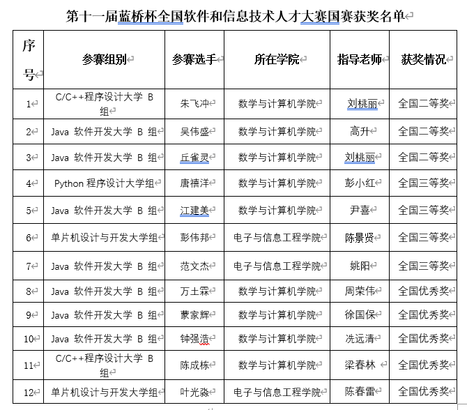 学子在比赛中不畏强手,发挥出色并取得优异成绩。在参加的C/C++程序设计大学组、JAVA软件开发大学组、单片机设计与开发组、Python程序设计组总决赛中,朱飞冲、吴伟盛、丘雀灵获得全国二等奖,唐禧洋等等4位同学获得全国三等奖,万土霖等5位同学获得全国优秀奖。