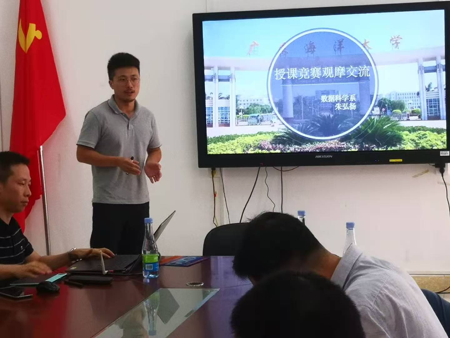 2019年度教师授课观摩竞赛第一名的朱弘扬老师做经验交流,然后由各系组织推荐的2位教师依次授课。比赛现场,参赛教师精心准备,比赛均围绕个人主干课程讲授,教学内容熟练,讲解重点突出,教学方法及手段多样、恰当,展现了较好的教学基本功。展示了个人的教学风采同时,也展现了数计学院青年教师的精神风貌和教学水平。