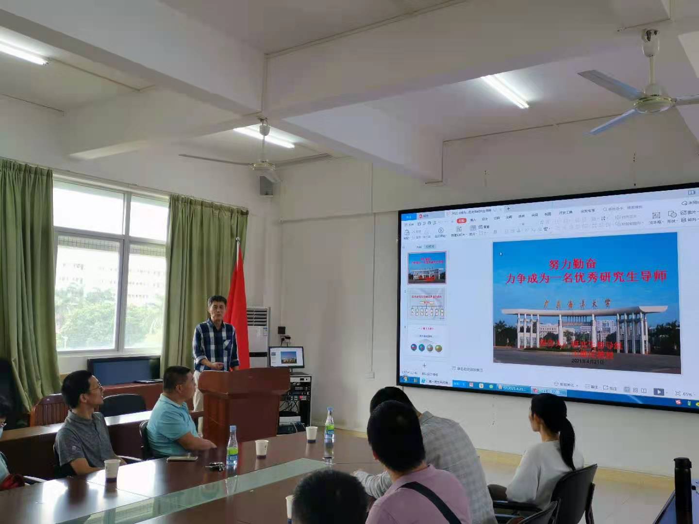 邀请学校研究生教学督导组组长王维民教授在第二教学楼A1-405为全体研究生导师、近两年有意向申请硕士生导师资格的老师做了题为《努力勤奋、力争成为一名优秀研究生导师》的专题报告,报告由学院院长彭小红教授主持。