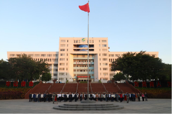 7时整,升旗仪式正式开始。伴随着雄壮的《义勇军进行曲》,鲜艳的五星红旗冉冉升起。