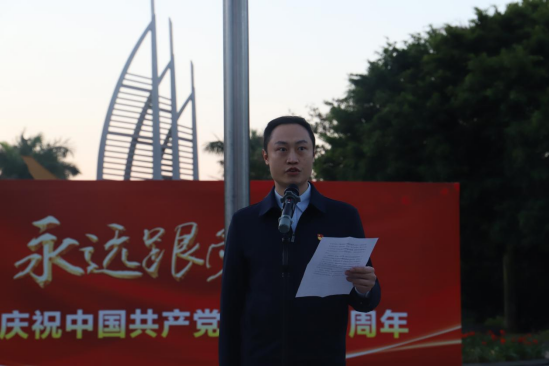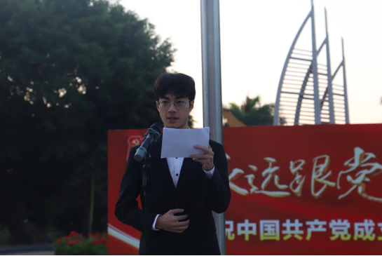 学院教师代表软件工程系陈小瀚老师以《勇立潮头敢为先、乘风破浪正当时》为题发表国旗下的讲话。陈老师指出作为一名专业教师,应该将个人的发展与学校、学院的事业紧密相连,投身参与到学校与学院发展建设中,并鼓励同学们应当树立家国情怀,紧跟时代步伐,积极参与到国家IT事业发展的建设大潮中。