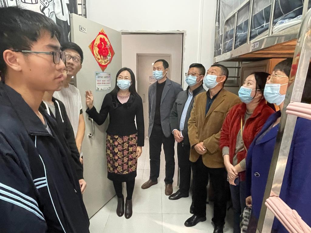 2月28日上午,学院谢仕义书记、彭小红院长、周荣伟副书记带领系主任、辅导员深入学生公寓,了解同学们返校情况和宿舍网络情况,并和同学们就新学期课程学习、疫情防控、餐饮和校园生活等亲切交流。