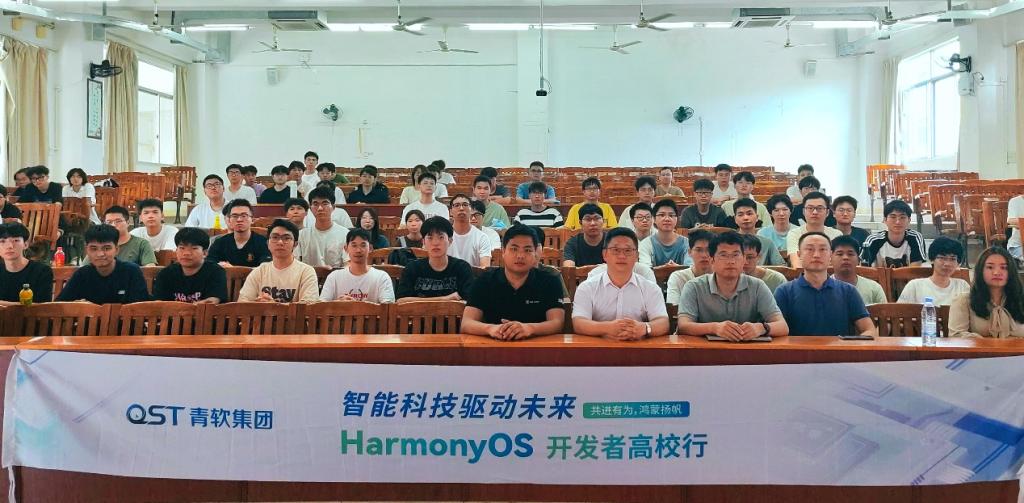 学生带来了一场题为“迎接鸿蒙产业新时代,开启HarmonyOS新技能“的讲座。讲座由软件系主任陈小瀚主持,学院副院长余应淮出席讲座并致辞。