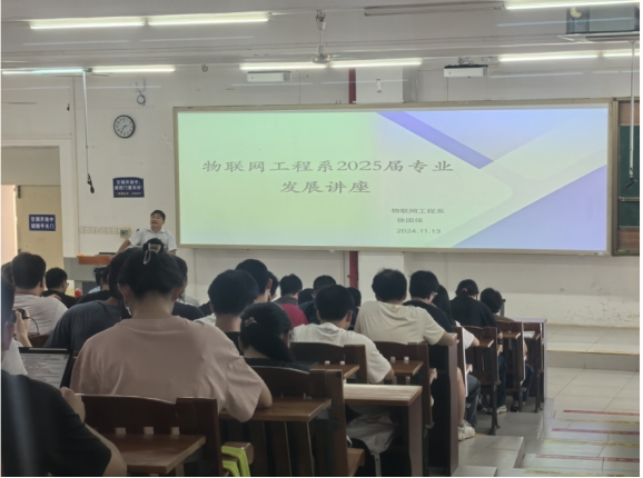 主任徐国保和副主任郑赞红分别主讲,物联网系全体教以及2025届物联网工程和信息管理与信息系统专业全体毕业生参加会议。