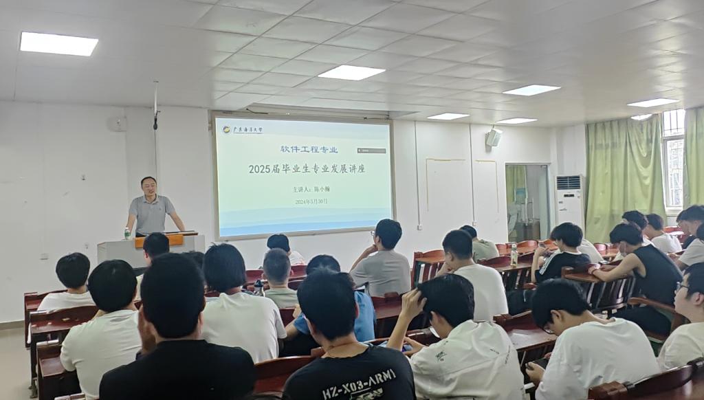 为帮助应届毕业生更好地了解软件工程行业的发展现状和未来趋势、做好专业发展规则,2025年530日下午,软件工程系在明德楼A1 103开展软件工程专业毕业生专业发展讲座。讲座由软件工程系主任陈小瀚主讲,全体软件工程专业2025届毕业生参加。