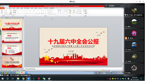 12月5日,学院党委副书记周荣伟给软件工程系教工党支部讲授了学习党的十九届六中全会精神专题党课。