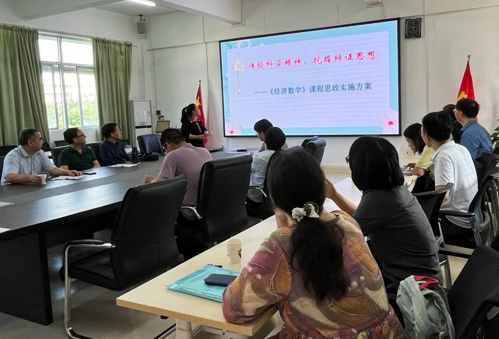 11月10日上午,学院在明德楼A1-405会议室举办了2022年课程思政授课比赛。本次竞赛由学院陈入云副院长主持,学院教授委员会委员、本科教学督导等5人担任评委,部分专任教师参加了观摩。通过对说课、课堂教学和现场答辩等各环节综合考评,王红青老师报送的《经济数学》——“定积分”课程获得各位评委的一致认可,并获准推荐至学校参加决赛。
